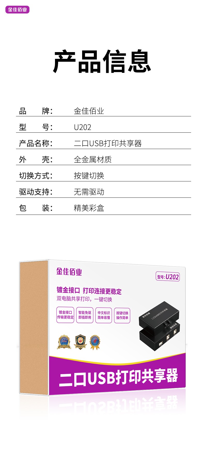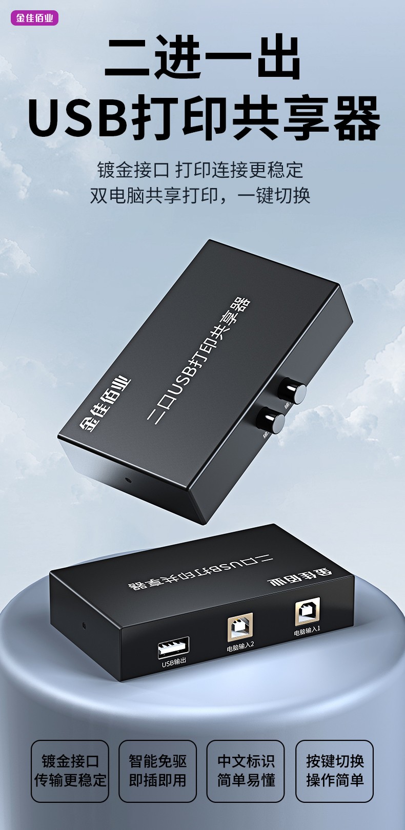 1. 支持兩臺電腦同時連接一臺打印機,一鍵切換共享打印