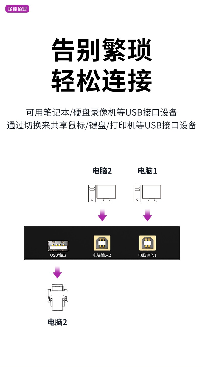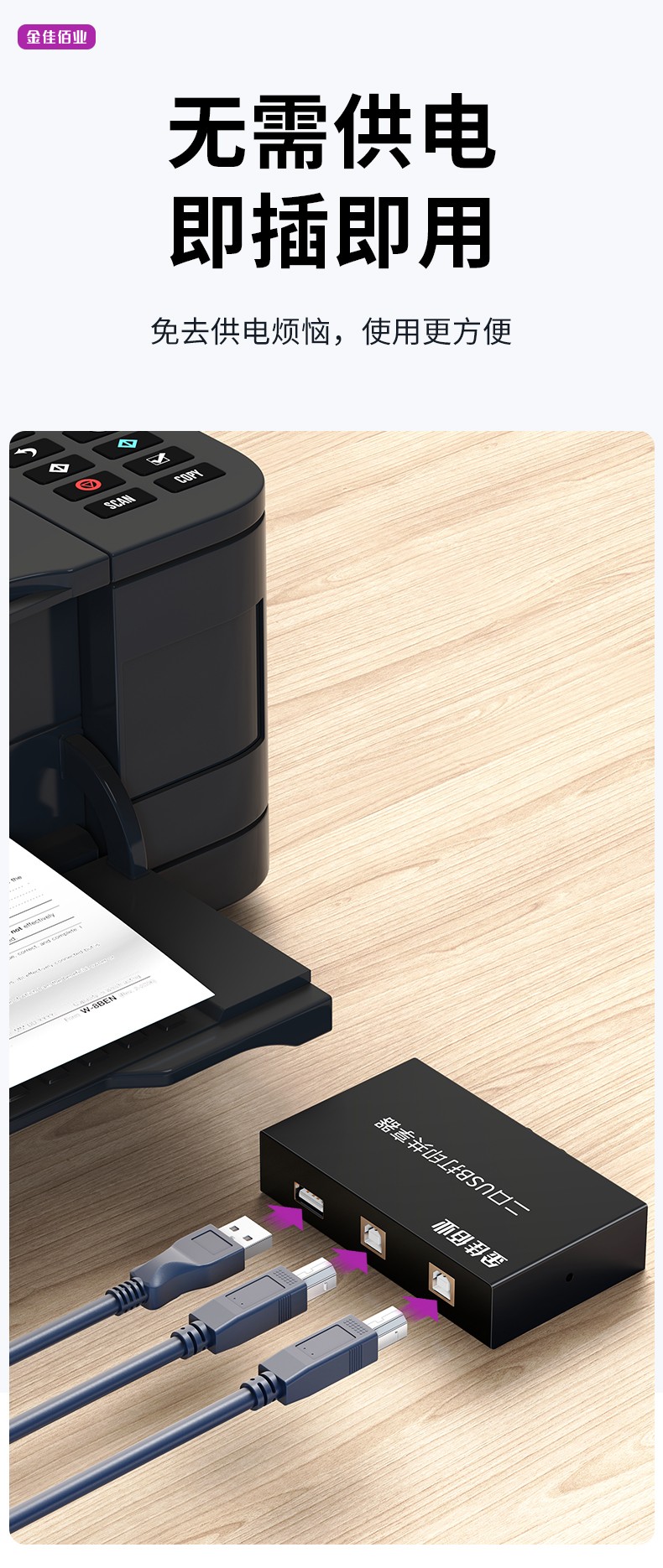 支持兩臺電腦同時連接一臺打印機,一鍵切換共享打印