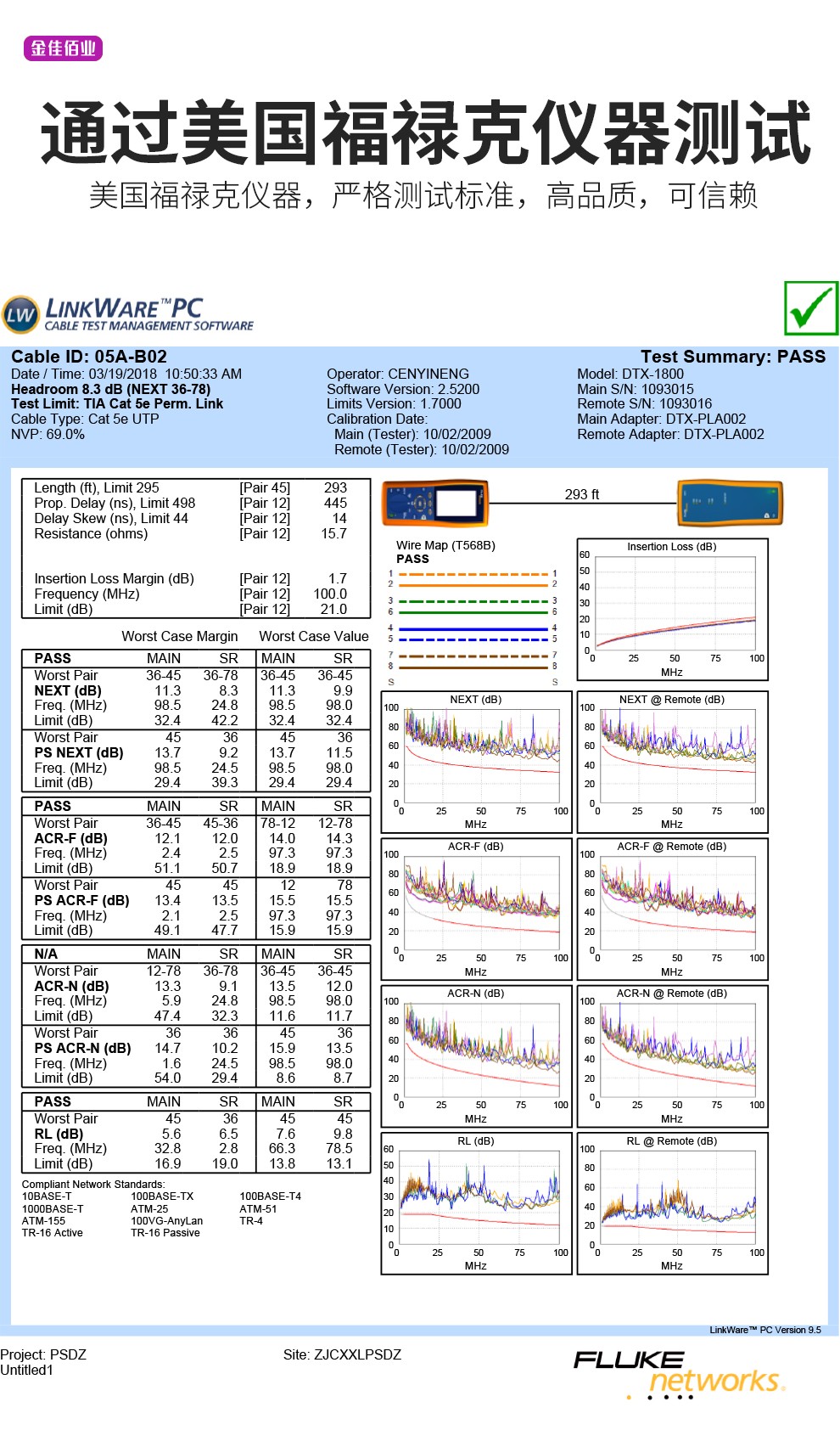 符合百兆以太網(wǎng)應(yīng)用系統(tǒng),過福祿克測(cè)試