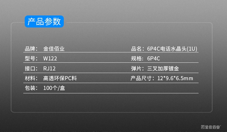 金佳佰業(yè) 四芯電話水晶頭 W122