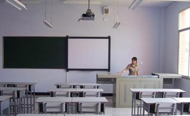 在黑板的左側(cè)靠窗一邊安裝投影屏幕,結(jié)合投影機鏡頭位置和幕布,吊裝投影機,構(gòu)成獨立的投影系統(tǒng)。