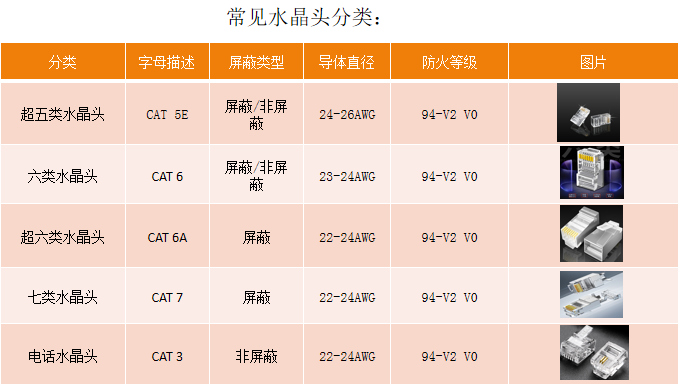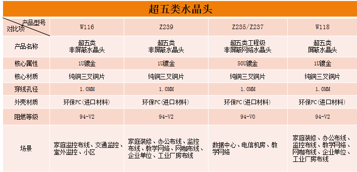 2.超五類和六類兩種水晶頭的參數(shù)不同