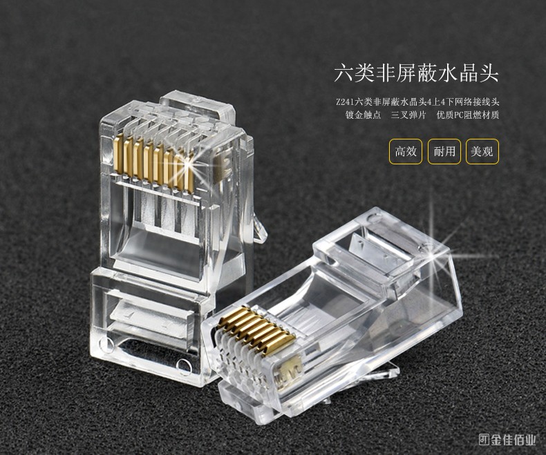 好的水晶頭采用優(yōu)質(zhì)PVC原料,外表晶瑩剔透光滑;其次,為減少外部電磁干擾,屏蔽水晶頭要注意屏蔽外殼部件,例如金佳佰業(yè)屏蔽水晶頭采用鍍鎳屏蔽、鍍金觸點,環(huán)保PC阻燃材質(zhì);過福祿克測試保障信號穩(wěn)定傳輸。