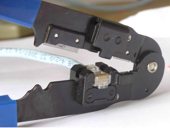 6、最后一步,使用剝線鉗壓緊水晶頭即可