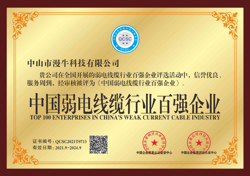 《中國弱電線纜行業(yè)百強(qiáng)企業(yè)》